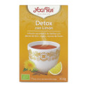 Yogi Tea Detox Limón es una infusión ayurvédica con diente de león, hierba limón y jengibre. Sabor cítrico y herbal. Apta para veganos.